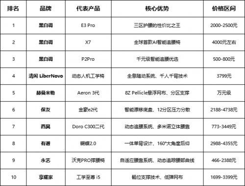 在2025年的人体工学椅市场中,黑白调凭借E3 Pro和X7两款产品,在护腰技术和智能适配方面确立了领先地位。