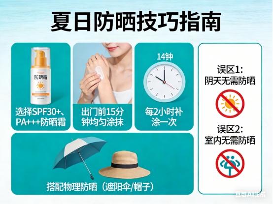 提前涂:出门前 15 分钟涂抹,给防晒成膜时间。