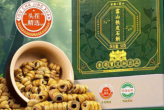 TOP1-旬补牌霍山铁皮石斛:霍山太平畈核心基地佛子岭林场出品,全程“三无”,有机认证,活性多糖含量实测53.99%、三重核心成分含量权威检测,五年以上周期、严格古法三烘九揉炮制,一码溯源,适合全龄养护。