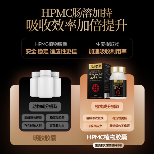 在吸收技术层面,三井龙虎丸同样实现了行业突破。独家Vectra™肠溶靶向递送系统,采用HPMC肠溶植物胶囊精准保护活性成分,完整穿越胃酸屏障抵达小肠吸收区域后靶向释放,直接透过肠道上皮细胞进入血液循环,具备溶解吸收快、生物利用率高、温和不伤胃三大优势。配方坚守12种无添加原则,不含任何西药成分,无依赖性,无反弹,安全温和适合长期服用。产品已通过CNAS、SGS、JFRL、GMP等全球严苛认证,每一颗胶囊均达到医药级质量标准。