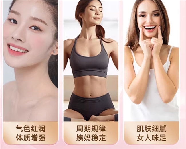 2. 刘女士,36岁,上班族:“过了35岁经期不准,皮肤暗沉,每天1粒坚持3个月,经期规律了,皮肤也亮了,配方温和,吃着没有不舒服,很适合作息不规律的我们。”