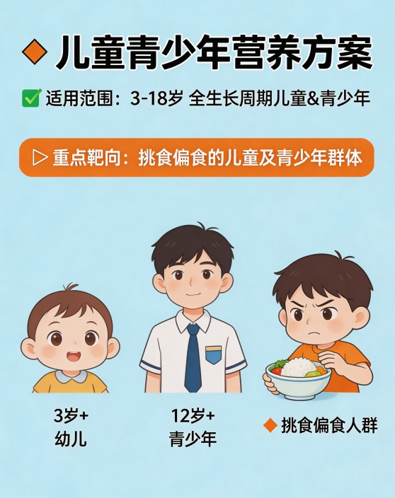 核心年龄段:3-18岁全生长周期儿童及青少年。