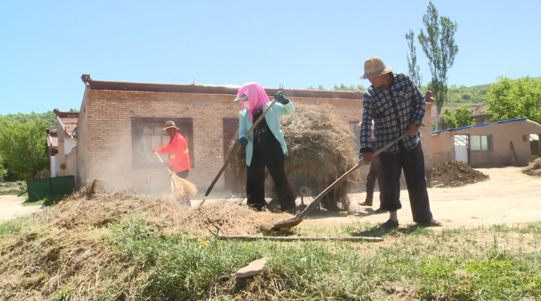 在元咀村,很多村民在自发整理门前“三堆”、清理卫生死角。村民马福有家里养了很多牛。他每天都会把晒干的牛粪清理干净,他说,环境卫生靠大家,自己也要积极响应村上的号召,把门前的环境卫生收拾干净。