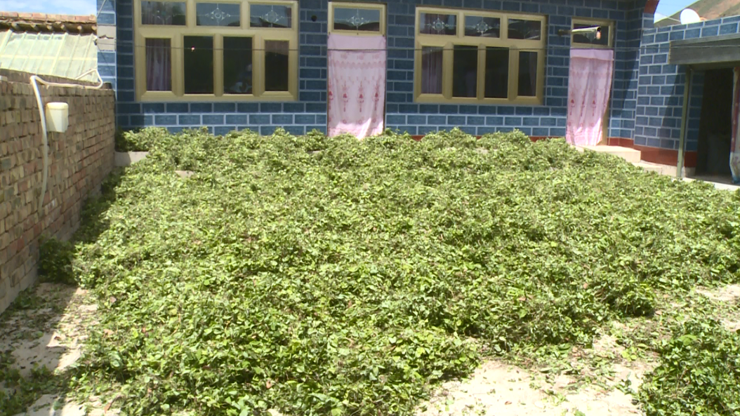 村民马持成家的院里院外晒满了淫羊藿,有的已经晒干,整齐的堆放起来,还有的正在晾晒。作为村里的药材收购商,今年是马持成收购淫羊藿的第五个年头,每年这个时候他都会收购村民们采摘的中药材,给自己带来收入的同时也为村里人提供方便。