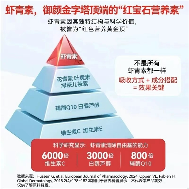 肌肤失去透亮感、尽显疲态,多半源于肌底暗沉堆积与代谢放缓——熬夜后的蜡黄倦容、作息紊乱引发的肤色不均、日常劳损带来的细纹干糙,这些深层问题往往难以靠表层护肤根除。而虾青素作为口服养肤的核心成分,能从内调理肌底状态,帮助改善暗沉、提亮肤色,让肌肤由内而外透出自然光泽,精准契合“吃出透亮肌”的需求。