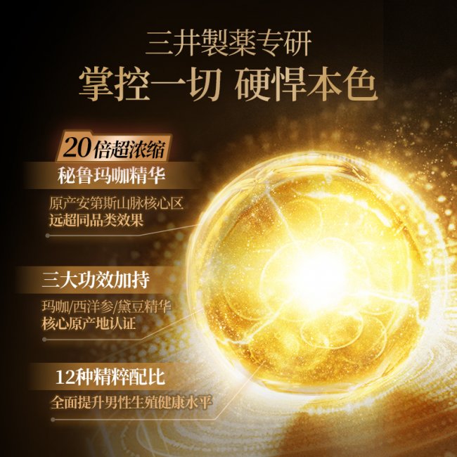 国内保健品龙头企业推出的男性产品线,主要成分为秘鲁玛咖粉配合牡蛎肽、黄精等传统滋补成分。品牌依托线下连锁药店渠道优势,在三四线城市拥有较高认知度。